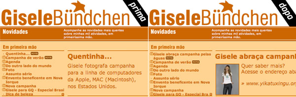 Due giorni fa sul sito ufficiale della modella compariva, (in portoghese) nella sezione delle news, proprio la notizia che "Quentinha… Gisele fotografa campanha para a linha de computadores da Apple, MAC (Macintosh), nos Estados Unidos" (Gisele è stata fotografata per una campagna di una linea di computer di Apple, MAC, negli Stati Uniti).