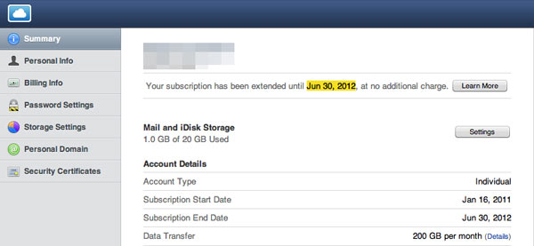 Ora Apple, mentre ricorda che l’indirizzo MobileMe è anche Apple ID per accedere a tutti i servizi online, informa della possibilità della cancellazione dell’abbonamento, inoltre avvia un sistema di rimborsi (tradotto già in italiano, un evento!) per i clienti che possiedono codici non ancora attivati. Il discrimine è 45 giorni, chi utilizza l’abbonamento da meno di 1 mese e mezzo riceverà un rimborso completo e chi lo utilizza da più tempo un rimborso parziale, calcolato da Apple in base al tempo già sfruttato.