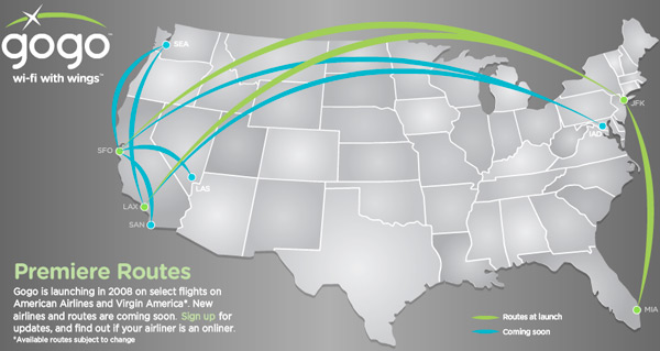 Per ora già American Airlines e Virgin America hanno stretto un accordo con Aircell per il collegamento a Internet, da distribuire a bordo con la modalità senza fili (802.11 a/b/g) verso i laptop, palmari o smartphone dei passeggeri.