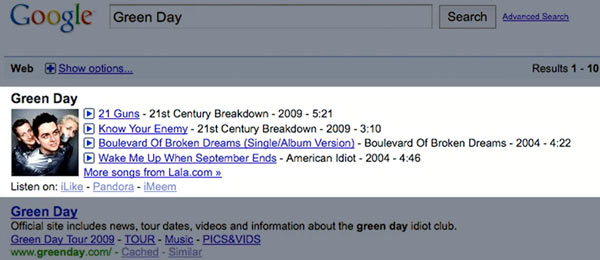 Sarà sempre più facile cercare la musica che si desidera e Google suggerirà dove andare ad ascoltarla o comperarla. Esclusi Amazon MP3 ed iTunes.