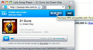 Digitando il nome di un artista, un titolo di una canzone o parte del testo appariranno dei link per l'anteprima ed eventualmente l'acquisto di tali canzoni. Se cliccati si aprirà una finestra supplementare per ascoltarle, ironicamente sarà indicata la compatibilità di quell'MP3 con iTunes (quindi iPod/iPhone).