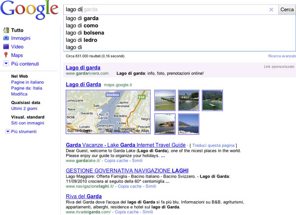 Google Instant velocizza la ricerca suggerendo (almeno in inglese) la domanda da fare a Google, componendo nel campo della ricerca i termini che si aveva in mente di digitare. Il servizio, come al solito, arriverà gradualmente nei computer di tutti gli utenti, per ora è attivo in USA, nelle prossime settimane anche in Italia assieme ad altri paesi europei e Russia.