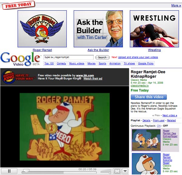 L'offerta video è estremamente attraente e fidelizzante per gli utenti, non per nulla anche iTunes Music Store regala una o più canzoni a settimana (di artisti emergenti, quasi mai big dell'alta classifica) e da qualche tempo anche filmati, a volte di una certa importanza… ma nulla di tutto ciò sulla versione nostrana di iTunes. Google invece non fa distinzioni con Free Today.