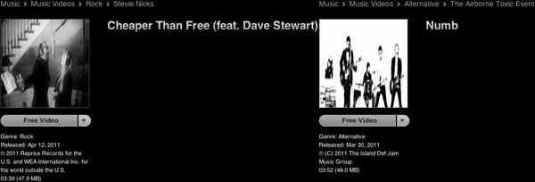 Su iTunes Store USA i videoclip in omaggio raddoppiano, sono Cheaper than free“, di Stevie Nicks featuring Dave Stewart e “Numb“, di The airborn toxic event.