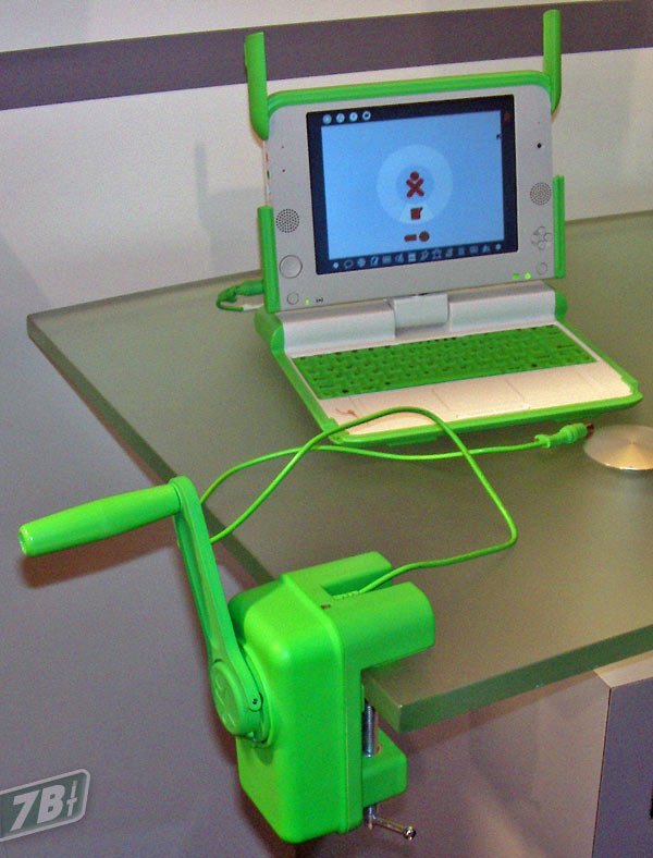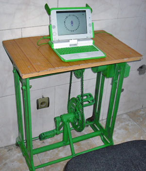 OLPC News ci mostra però una possibile soluzione, oltre alla ricarica a maniglia proposta per assenze improvvise di corrente (fotografia a fondo articolo), si potrà mantenere una mente aggiornata ed un corpo allenato allo stesso tempo. Pedalando.