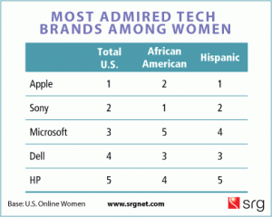 La seconda edizione dello studio Women & digital life di SRG – Solutions Research Group Consultants rivela i marchi del mondo tecnologico che le donne statunitensi ammirano di più: Apple è al vertice.