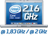 Il modello da 2.699 euro ora include un processore Intel Core Duo da 2,0 GHz (invece che 1,83 GHz), il modello da 2.159 euro ora include un processore Intel Core Duo da 1,83 GHz (invece che 1,67 GHz).