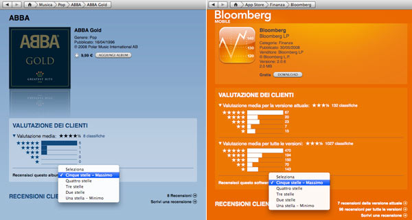 Tra le novità di iTunes 8.1, uscito questa settimana a seguito dell'iPod shuffle 3G, si trova anche un più elaborato sistema per votare sia i contenuti multimediali di iTunes Store che i software di App Store.