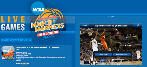Prima di trasferirci su iTunes Store USA è assolutamente degno di nota un software che gli amanti del basket vorranno acquistare da App Store USA (solo qui): "CBS Sports NCAA March Madness On Demand". Per 5 dollari tutti gli utenti di un iPhone oppure iPod touch avranno la possibilità di seguire le partite del basket universitario, in diretta streaming e con ricche statistiche.