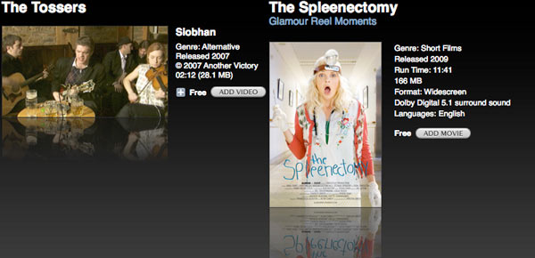 Il videoclip gratis è "Slobhan" di The tosser, al quale si aggiunge il cortometraggio della serie Glamour Reel Moments "The Spleenectomy", diretto da Kirsten Smith.