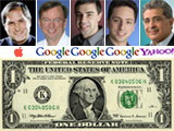 E' noto che Steve Jobs, a capo di Apple, riceve da tempo, dall'azienda che ha fondato, 1 solo dollaro l'anno di stipendio per sua richiesta volontaria, lo stesso accade per il trio di Google, ovvero Eric Schmidt (CEO), Sergey Brin e Larry Page (co-fondatori).