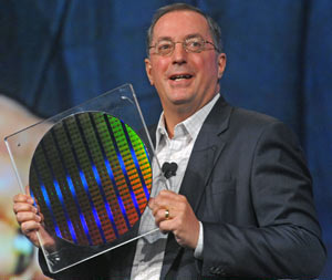 Per il prossimo anno si passerà alla tecnologia @ 32 nm con "Arrandale" e "Sandy Bridge" ma il gioiello ce lo aveva in mano il CEO di Intel, Paul Otellini reggeva un wafer di "Westmere" @ 22 nm (2,9 miliardi di transistor in sulla punta di un dito), prossimo traguardo dei chip ultra miniaturizzati e potenti. Intel vuole accelerare la roadmap.