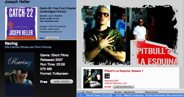 Come consuetudine siamo andati a scovare i contenuti gratuiti: questa settimana iTunes regala il primo capitolo da 24 minuti dell'audiolibro "Catch-22" di Joseph Heller, "Raving" è il cortometraggio della serie "Elle Fashion Stories and Plum Pictures" di Julia Stiles e infine la prima puntata della nuova serie "Pitbull's La Esquina" dal canale latino Mun2.