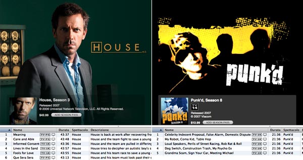 Gli scherzi di MTV allo show-biz di Hollywood e la serie della Fox dedicata al bizzarro dottor House sono le novità più importanti tra gli spettacoli televisivi su iTunes Store USA.