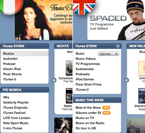 Le nazioni capofila tra le ventidue di iTunes sono Gran Bretagna, Francia e Germania, poi vanno al seguito quelle che non necessitano di ulteriore traduzione per i menu.