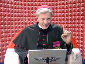 Nella puntata di ieri di "Mai dire Grande Fratello Show" su Italia 1 la Gialappa's Band ha ospitato anche questa volta l'imitatore del monsignor Richard Williamson, non più scomunicato ma sospeso dal Vaticano.