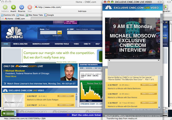 Attualmente sia Safari che Firefox, su Mac, mostrano con una certa difficoltà il sito, molto ricco di contenuti (forse troppi), ma appare molto utile per chi si occupa di finanza. Gli streaming video sono in standard Win Media e grazie a Flip4Mac funzionano anche sui nostri computer.