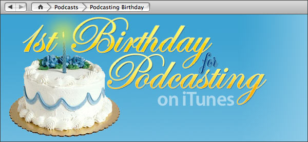 Apple riconosce come il podcasting abbia cambiato le abitudini di molti e celebra il primo anno di podcasting tramite iTunes con una pagina apposita che seleziona i migliori e "pionieristici" podcasting (in inglese), per il momento sono 41.