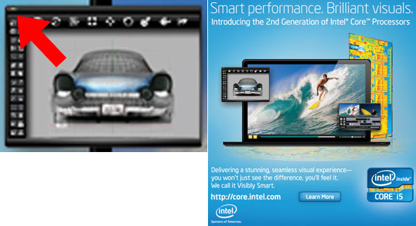 Grazie alla scoperta di 9 to 5 Mac vediamo un banner pubblicitario di Intel per i nuovi processori Core i5 di seconda generazione, ovvero i “Sandy Bridge” (con o senza chipset difettosi) impiegati in un computer portatile scuro e molto sottile.