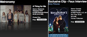 Apple questa settimana ha regalato il videoclip "A thing for me" di Metronomy in versione iTunes Plus. Si aggiunge a questo il trailer promozionale "Exclusive clip – Faux interview" del film "Nick & Norah infinite playlist", con le false interviste ai due attori protagonisti.