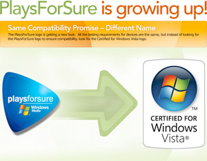 Ora "PlaysForSure" è ufficialmente estinto. D'ora in avanti Microsoft spingerà solo il marchio "Certified for Windows Vista", ma nonostante ciò campeggia sulla pagina apposita del sito "PlaysForSure is growing up!" (PlaysForSure cresce!). In realtà sparisce.