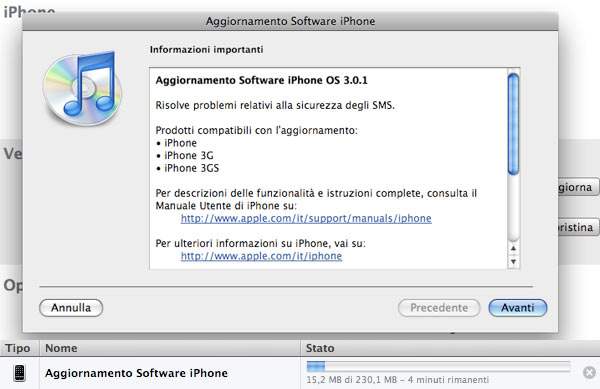 Poco fa iTunes segnalava iPhone OS 3.0.1, quello atteso per curare il malanno indicato 24 ore fa in dettaglio in una conferenza sulla sicurezza di Las Vegas.