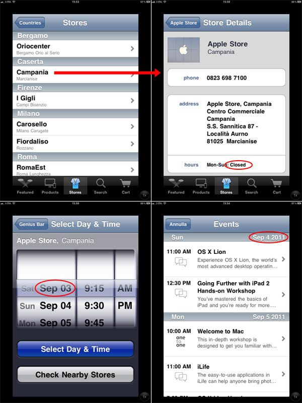 Se lunedì sembrava ormai tutto chiaro, già martedì gli entusiasmi venivano spenti. Alcune informazioni relative al negozio del centro commerciale Campania sparivano dall’elenco dell’applicazione Apple Store.