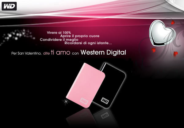 Per festeggiare San Valentino, Western Digital dà a tutti gli innamorati la possibilità di vincere un My Passport Essential nero o rosa. In alternativa, per i meno romantici, si può scegliere di vincere un WD Velociraptor da 150 GB. L'estrazione dei vincitori avverrà il 16 febbraio.