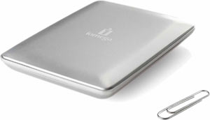 Le forme ed i materiali di questo sottile drive esterno richiamano alla memoria il computer portatile di Apple che si può infilare in una busta per documenti.