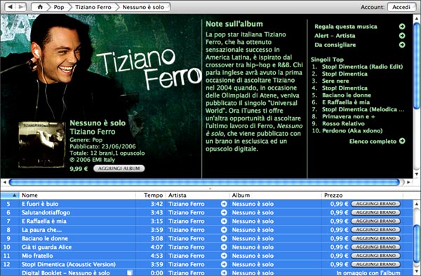 Degno di segnalazione, sempre per iTMS Italia, l'album appena rilasciato di Tiziano Ferro