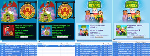 Essential TV dove iTMS mostra i 12 migliori spettacoli televisivi che è possibile acquistare per intere stagioni con prezzi da 12 a 45 dollari: Lost (stagione 2), 24 (stagione 5), Desperate Housewives (stagione 2), CSI:NY (stagione 2), The Office (stagione 2), Law & Order (stagione 16), South Park (stagione 10), Battlestar Galactica (stagione 2), Scrubs (stagione 5), Prison Break (stagione 1), Weeds (stagione 1) e Chapelle's Show: Uncensored (stagione 2).