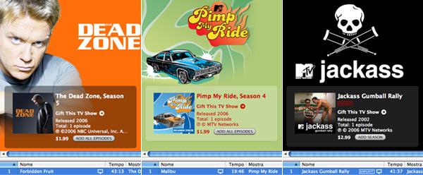 Da MTV due programmi cult: Pimp My Ride con un solo episodio della quarta stagione di taroccamenti di automobili in stile californiano e Jackass – Gumball Rally che inaugura la quarta serie di Jackass con questa rievocazione di una famosa corsa illegale sulle strade di tutti i giorni, il filmato dura 42 minuti e costa 2,99 euro (alla faccia del prezzo fisso).