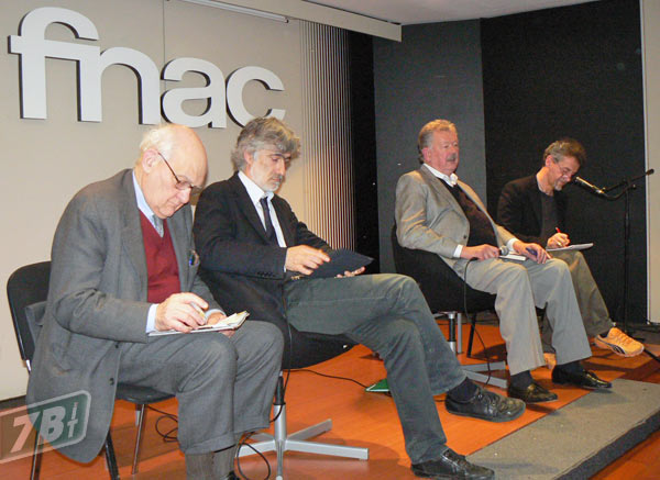 Nella foto sottostante trovate il palco di questa sera alla libreria Fnac, da sinistra a destra: l’editore italiano Ulrico Carlo Hoepli, il direttore di Nòva Luca de Biase (che ha scritto una breve prefazione nel libro) con in mano il suo iPad, l’autore Jay Elliot e l’eccellente traduttore (sentito già a “Che tempo che fa”).
