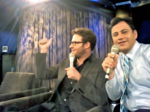 In una soggettiva particolare la iSight del Mac è stata accesa ed è quindi stata registrata l’intera puntata in questo formato, ecco un breve assaggio sul canale YouTube dello show, mentre Kimmel presenta il leader della band The Green Hornet, che si accomoda accanto a lui sul divano.