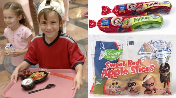 Come si nota dalle immagini diffuse da Disney i nuovi alimenti commercializzati nei parchi di divertimento, seppur quasi tutti confezionati, la frutta, verdura, pasta, formaggio e yogurt la fanno da padrona. La parola "apple" (mela) non manca da molti dei piatti proposti… con grande gioia di Steve Jobs, CEO di Apple.