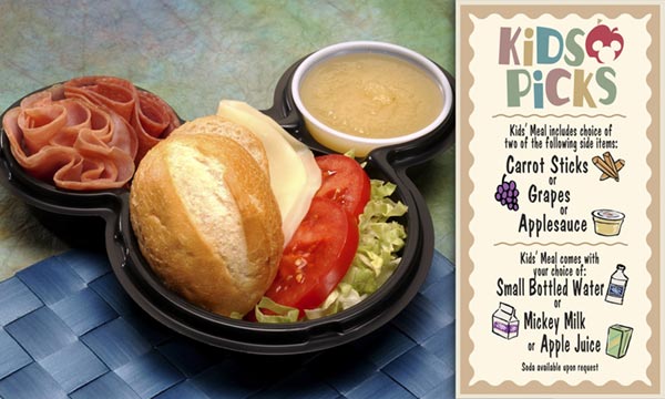 Disney intende sostituire le varie soda e patatine fritte con acqua naturale, latte parzialmente scremato o succo di mela e frullati di frutta/verdura (carote o mele), chicchi d'uva o bastoncini di carote, non costerà nulla di più.