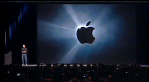 Non preoccupatevi nel vedere, per la prima volta, un palco senza tavolo e computer, Jobs non aveva alcun computer nuovo da mostrare. Ai lati del grande schermo solo un doppio podio dal quale far funzionare l'iPhone di prossima introduzione.