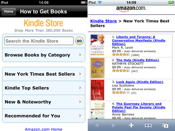 Il software che gira su iPhone/iPod touch migliora la possibilità di acquisto online dei libri. Grande attenzione a Kindle ma le periferiche di Apple sono tenute in considerazione da Amazon.