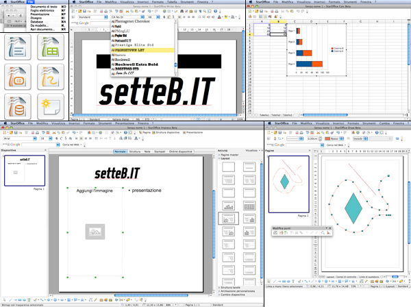 Non si confonda StarOffice con OpenOffice, il progetto open source è comune a tutti e due ma non è sviluppato e commercializzato direttamente da Sun. OOo 3 (build 9297) funziona finalmente su Mac dallo scorso maggio senza X11.
