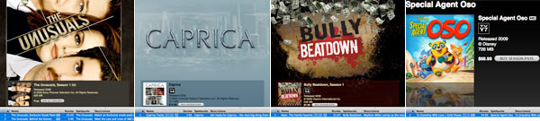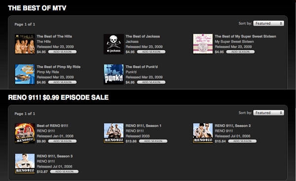 A prezzo speciale sono disponibili alcune serie di MTV come "Jackass", "My super sweet sixteen", "Pimp my ride", "Punk'd" e "The hills" ma anche annate di "Reno 911!". Ogni episodio costa 1 dollaro.