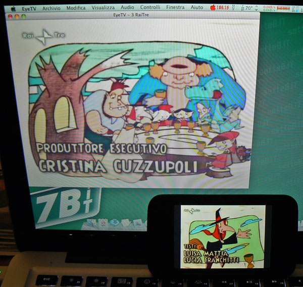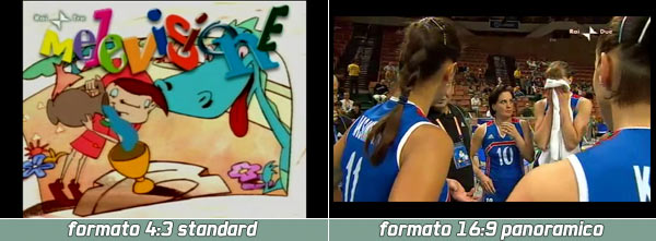 Ecco come appaiono sullo schermo dell’iPhone/iPod touch i due formati trasmessi dai vari canali, sia il 4:3 che il 16:9, un tasto sullo schermo permette di riempire completamente i 480 x 320 pixel di risoluzione.