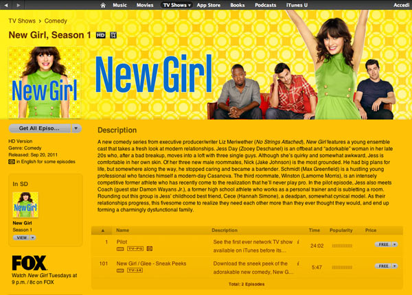 Aggiornamento del 06/09/2011: in serata anche Apple ha segnalato la premiere in anteprima di “New girl”.