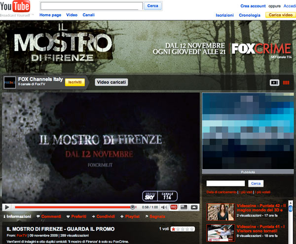 Puntate intere ancora nessuna, tranne il primo episodio de “Il mostro di Firenze”, in onda questa sera su Fox Crime (canale 114 di Sky) e che arriverà online in alta definizione appena dopo la trasmissione in TV, ovvero dalle ore 23, restando disponibile per due settimane.