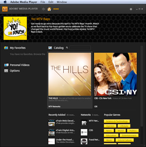 Un anno dopo ecco pronto all'uso Adobe Media Player, con tanto di contenuti video da vedere in streaming da MTV, CBS, Universal Music, PBS, Condé Nast, etc. Funzionano anche in Italia, basta sorbirsi ogni tanto uno spot (di prodotti non in vendita da noi).