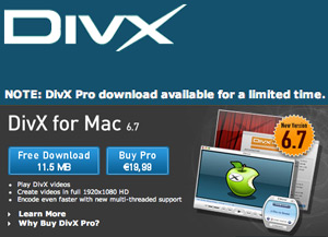 Dal 16 maggio è disponibile DivX per Mac 6.7, il player di file multimediali compressi con il codec DivX, acquistando la versione Pro è possibile fare uso del medesimo codec e convertire i filmati, anche da QuickTime.