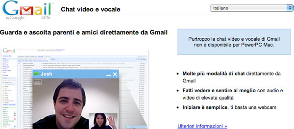 Non c'è molto di nuovo rispetto a quello che già fa iChat o Skype ma qui è integrato come servizio supplementare della webmail gratuita di Google. La video chat funziona con Mac OS X, Win XP e Win Vista sui browser più comuni come IE7, Firefox, Safari e Chrome.