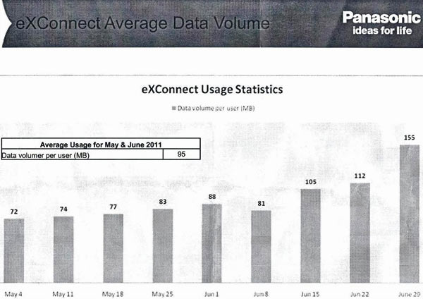 Secondo Flightglobal si è raggiunta una media di 95 MB di traffico per passeggero sui voli Lufthansa, nei mesi di maggio/giugno, aerei stabilmente collegati con il sistema eXConnect di Panasonic Avionics. Il dato è in crescita se si pensa che il 29 giugno si è già toccato il picco di 155 MB.