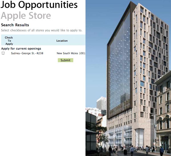 Come se non bastasse la conferma che questo negozio sarà un Apple Store arriva direttamente dal sito di Apple, nella sezione australiana della ricerca di personale per gli store: il negozio viene segnalato come il "retail # 238", non necessariamente un numero che indica la progressione delle inaugurazioni. Apple cerca personale.