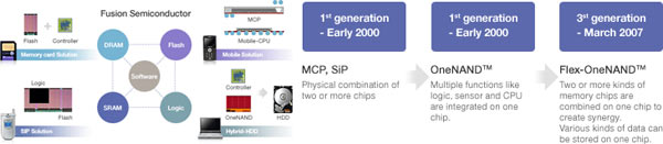 Samsung ha cominciato ad usare la tecnologia @ 40 nm per le memorie Flex-OneNAND da 8 Gb della famiglia fusion.