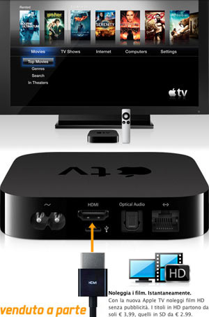 Inoltre la “vecchia” Apple TV da 189 euro è sparita da Apple Store Italia, probabilmente è in arrivo la nuova versione senza hard disk che costa 70 euro in meno (lo stesso prezzo di Francia, Germania ed Irlanda), finora disponibile solo dove iTunes Store ha noleggiato film o spettacoli TV.